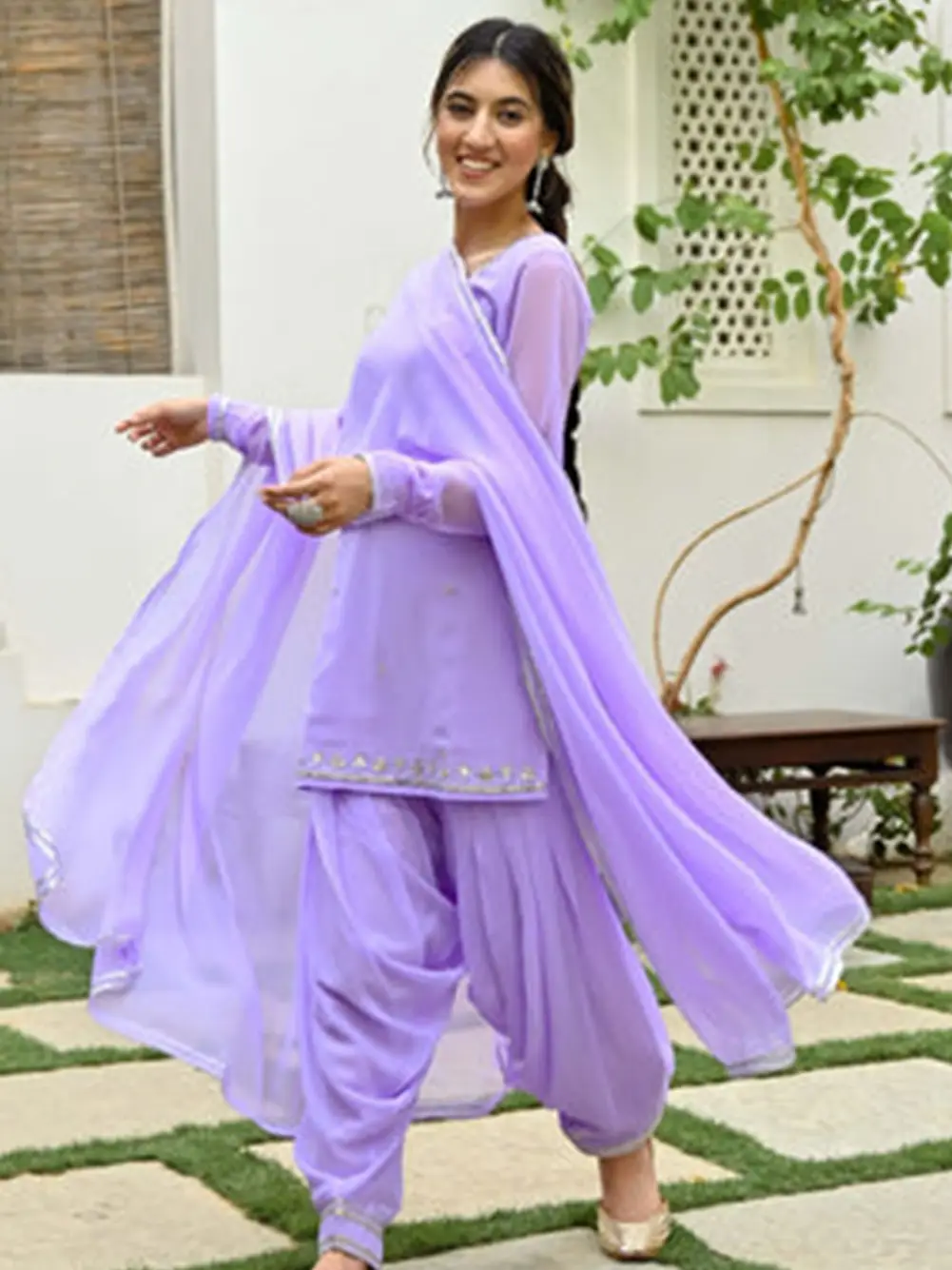 Elegant and alluring, our Lavender Kurta Patiala Set embodies timeless charm. Crafted with exquisite detail, the lavender hue exudes grace, while the comfortable Patiala pants add a touch of modern flair. Perfect for any occasion, this set seamlessly blends tradition with contemporary style. Elevate your wardrobe with this captivating ensemble.